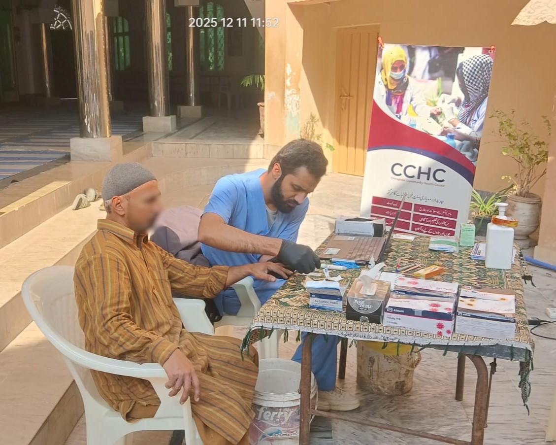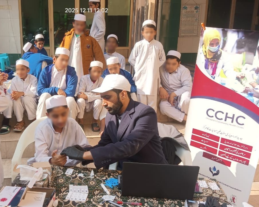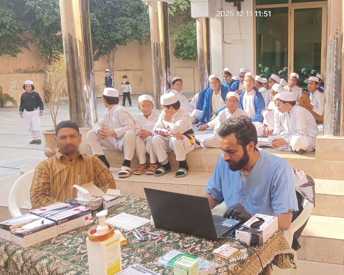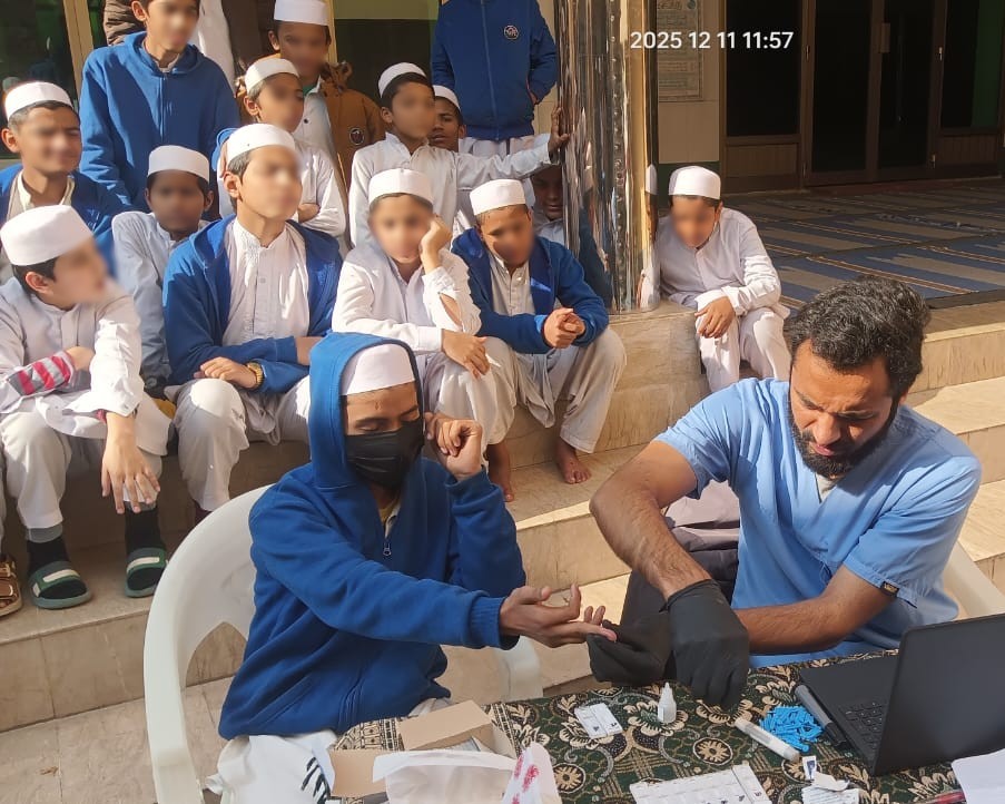 On December 11, 2025, a hepatitis screening camp was conducted at Dar-ul-Uloom Rasheediya, Islamabad Mohalla Sialkot
